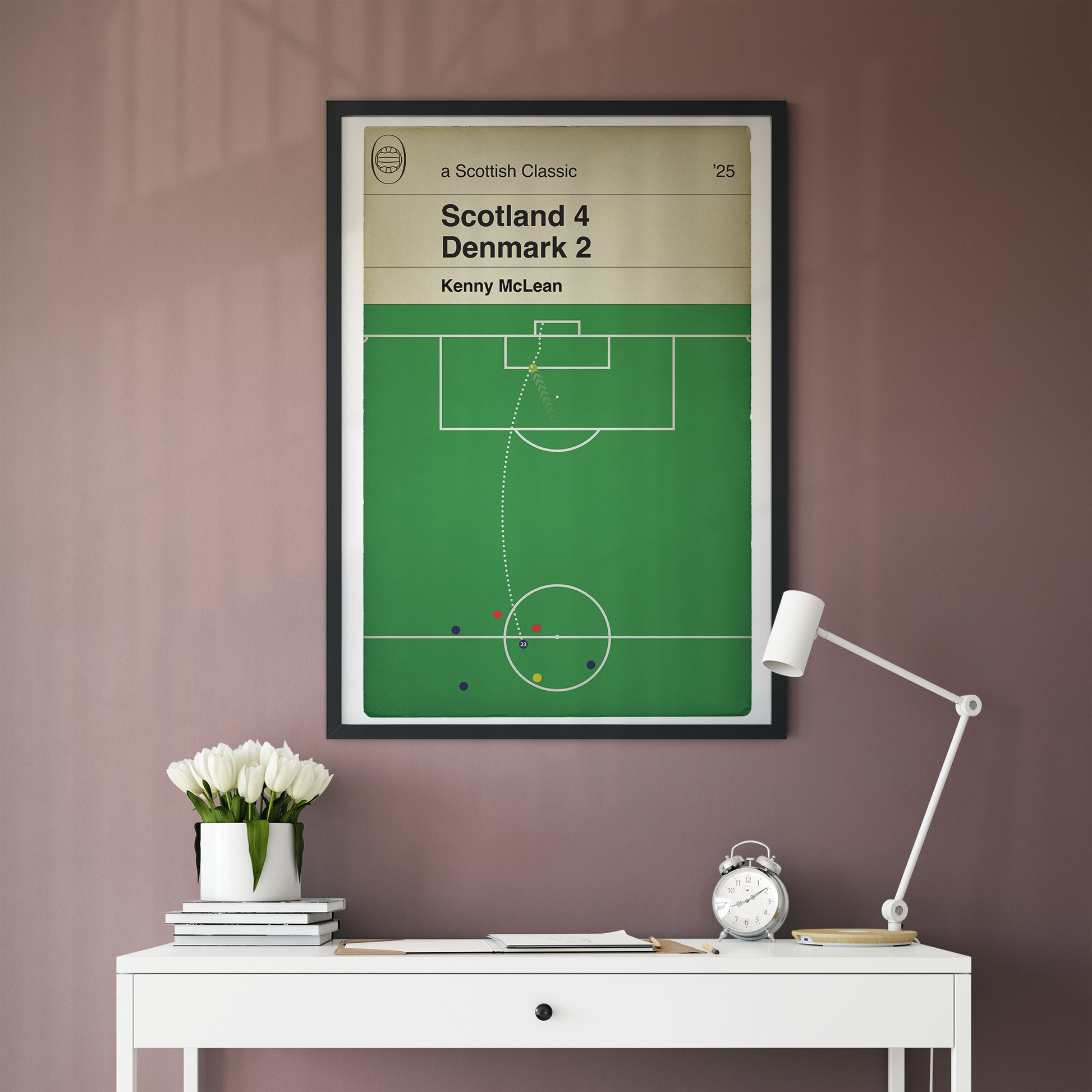 This version depicts the fourth goal of a truly epic World Cup Qualifier at Hampden Park in 2025. Scotland faced Denmark in a winner takes all match. Group leaders Denmark only needed a draw to secure top spot but would be overtaken by Scotland with a defeat.